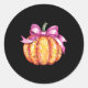 Sticker Rond Retro Coquette Citrouille rose Bow automne Thankgi