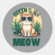 Sticker Rond Rétro "Green is the New Meow" Cool Chat Nature Art