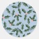 Ajoutez une pop de couleur à votre correspondance de vacances et à vos cadeaux. Ce design vintage sera parfait sur vos colis ou comme étiquettes d'enveloppe pour sceller votre correspondance écrite. Cet autocollant rond présente des sprigs verts avec baies roses et bleues contre un arrière - plan bleu pour un look de vacances classique. Cet article est également disponible avec espace pour une personnalisation avec un message et un nom personnalisés. Coordonner les éléments disponibles dans mon magasin.
