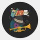 Sticker Rond Retro Jazz Trumpets Funny Player Music Festival Ne
