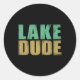Sticker Rond Retro Lake Dude Bateau Fun Lake Life Lake Life Lak