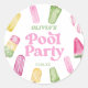 Sticker Rond Retro Popsicle fête d'anniversaire de la piscine