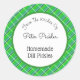 Un autocollant de conserve ou de cuisson sur mesure avec un script manuscrit et des lettres de dalles sur un motif plaid vert rétro avec de petites bandes blanches et bleues pour les cornichons, confitures ou autres recettes.