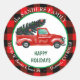 Sticker Rond Retro Red Truck2 Christmas Tree Adresse de retour