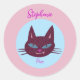 Sticker Rond Rétro rose et bleu Purring Kitty