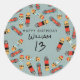 Sticker Rond Retro Skateboard Blue Cool Skateboard Anniversaire