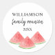 Cet autocollant Family Reunion est décoré avec des tranches de pastèque aquarelle et une typographie stylisée. Facile à personnaliser. Aquarelle originale © Michele Davies.