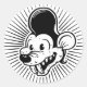 Rongeur de dessin animé rétro, avec pompadour, boutons et dents nues, sur un fond radieux. B/W, t-shirts & cadeaux.