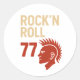 Audacieux et minimaliste, ce design punk vintage est doté d'un profil mohawked rouge, d'une typographie "ROCK 'N ROLL 77" en détresse, et d'un arrière - plan noir croustillant, parfait pour les amateurs de musique rétro et de style rebelle.