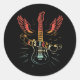 Sticker Rond Rock N Roll Guitare Amateurs rétro