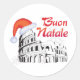 Buon Natale design de vacances et italien Natale avec photo du Colisée Romain portant un casquette du Père Noël avec la neige tombant.