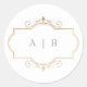 Sticker Rond romantique classique or monogramme sauge vert mari