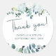 Ces stickers de Merci floral romantique et élégant font le sceau parfait pour votre mariage, avec un bouquet botanique classe de feuilles d'eucalyptus aquarelle clair et aquarelle complété par des fleurs blanches délicates et est facilement personnalisable avec vos noms et date mariage.