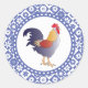 Sticker Rond Rooster et Fleurs français bleu et blanc rétro