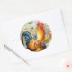 Un coq de nid encadré par un bevy de ses poules et un foin en douceur autour de lui. Les doux jaunes et gris apportent le coq coloré au centre de l'attention, là où le fier oiseau aime être. Il s'agit d'un dessin mélangé dans le pastel à l'huile et crayon coloré. Par Amanda Diehl, Paxdomino Designs