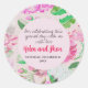 Diseño elegante para un abanico de regalo para invitados, con un estampado de flores y hojas en tonos verdes y rosas. La paleta de colores crea una atmósfera relajante, y con la posibilidad de personalización.
