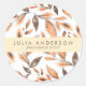 Moderne, Professionnel et Chic Moderne Rose Or Botanique Feuille Classic Round Sticker présente le nom complet et la carrière dans un texte professionnel dans une zone violette audacieuse, adapté à toute profession, directeur artistique, rédacteur, designs d'intérieur, avocat, avocat, enseignant, dentiste, médecins, écrivain, maquilleur, coiffeur, etc.