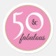 Texte blanc et noir avec Sticker arrière - plan rose 50 et Fabulous 50th Birthday. L'expression "50 & Fabulous" est écrite dans une typographie branchée et encerclée par une mince bordure dorée. Ce modèle existe en plusieurs couleurs.