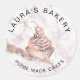 Cakes & Sweets Cupcake Accueil Boulangerie Rustique Vintage Sticker rond avec Rose Marbre Or arrière - plan
