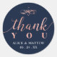 Cet autocollant de remerciement de mariage simple et élégant présente une belle typographie rose en or sur un arrière - plan de marine. Objets correspondants disponibles dans ma collection "Classic Elegant Wedding". Conçu par BaraBomWedding.