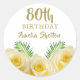 Sticker rond rose jaune et Feuille 80e anniversaire Classic. stickers floraux d'anniversaire avec de belles roses jaunes et des feuilles tropicaux. Parfait pour une femme qui fête son anniversaire. Ajoutez votre nom et votre âge.