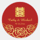 Sticker Rond Rose mariage chinois découpé en carton rouge et or