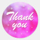 Sticker Merci Fille Étoile Métallique Rose. Le design a des étoiles sur un arrière - plan métallique rose et violet.