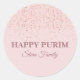 Rose Poussière Parties scintillant Rose or Hébreu Personnalisé Happy Étiquettes Purim. Ces autocollants sont parfaits pour ajouter une touche d'élégance à votre manot à mâchoire ou comme complément à de grands cadeaux pour les amis et la famille.