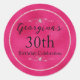 Ces étiquettes autocollantes personnalisées présentent un design glamour. Une bordure scintillante de faux strass rose encadre l'autocollant. Le fond est un design en feuille de couleur rose vif brillant. Un nom d'exemple et une date d'anniversaire sont imprimés au centre, que vous pouvez personnaliser pour inclure votre propre nom, titre d'événement ou autre texte. Des diamants accentuent les parties supérieure et inférieure de la zone de texte. C'est parfait pour un anniversaire, une fête de mariage ou un autre événement spécial.