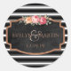 stickers de monogramme de parties scintillant en or rose romantique et faux rose pour les faveurs de mariage - Cadre en faux tableau à la mode avec bords de parties scintillant en or rose et roses roses de style vintage. Les noms monogrammés de mariée et de mariée sont centrés sur l'élégante lettre en or rose avec une grande marque en rose pastel. Date de mariage personnalisée en dessous en or rose assorti. Avec arrière - plan motif moderne rayures noir et blanc. Note : Toutes les images sont imprimées. Pas de parties scintillant ou de tableau de bord réel. Elégante enveloppe florale noir et blanc mariage sceaux pour les faveurs de mariage. Décor floral noir et blanc dans notre boutique Zazzle.com/angela65. Magnifique mariage floral noir et blanc merci stickers parfait pour un mariage de jardin de printemps ou d'été. Cliquez sur option pour modifier les couleurs, la taille et les styles de police du texte.