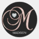 Sticker Rond Rose personnalisé Coeur d'or Lettre monogramme M