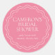 Parfait pour les baby showers de mariage printaniers ou estivaux dans le jardin, ce design élégant présente une bordure ondulée en coquille sur un fond rose vif. Personnalisez ces autocollants de baby shower de mariage avec le nom de votre événement, la date et l'année.