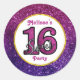 Sticker Rond Rose & Purple Sweet 16 Parties scintillant étincel