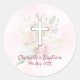 Sticker Rond Rose rose floral fille Baptême