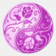 Ce magnifique design de Yin yang comprend deux roses tribaux stylisés. Des tourbillons violets complexes ornent les deux côtés de ce symbole traditionnel, créant ainsi un motif délicat. Les deux fleurs coulent du fond de la goutte de larme de chaque côté avec des feuilles poussant des tiges. Ce Yin yang unique crée un design d'autocollants étonnant et élégant.
