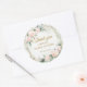 Roses roses blush boho et cadre doré floral classique autocollant rond monogramme