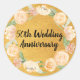 Beau autocollant pour sceller vos invitations de fête d'anniversaire, faveurs de fête ou notes de remerciement. Une couronne de roses roses rousses entoure l'expression 50e anniversaire du Mariage. Le riche arrière - plan d'or chaud les encadre parfaitement