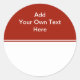 Sticker Rond Rouge foncé avec zone blanche et texte.