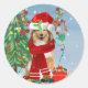 Sticker Rond Rough Collie Chien dans neige cadeau de Noël
