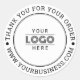 Modern elegant design features logo design framed by a thank you message and your website. Adds a personal touch to order items. This professional custom branded thank you sticker will be perfect for your business.