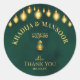 Royal Emerald Green Gold Mariage islamique Merci Classic Round Sticker Ce sticker rond, parfait pour les faveurs de mariage, a une touche de magie! Il a un bel arrière - plan vert émeraude avec des lumières dorées chatoyantes, comme une nuit étoilée. Les noms du couple sont écrits dans un arc gracieux, et il y a un message arabe spécial, 'wa khalaqnakum azwaja' (signifiant 'Et nous vous avons créé par paires'). Nous avons ajouté "Avec amour" et "Merci" parce que nous vous apprécions vraiment d'être là. La date de notre mariage est également subtilement incluse. Ces autocollants apportent une touche d'élégance aux enveloppes, aux cadeaux et bien plus encore.