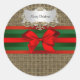 Sticker Rond Ruban Rustique Burlap Rouge Vert Bow