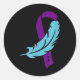 Sticker Rond Ruban Violet Et Plumes Turquoises Prévention Du Su
