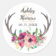 Avec un style boho rustique enchanteur, ce design autocollant mariage présente des cornes de cerfs magnifiquement ornées de fleurs d'aquarelle dans des teintes violettes, magenta et roses riches. Remplacez l'exemple de texte par vos informations. Cet autocollant fait un beau choix pour les faveurs de mariage, la correspondance et plus encore.