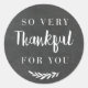 Autocollants cadeaux de vacances et étiquettes personnalisés pour la saison automnale de l'automne avec le design typographique "tellement reconnaissante pour vous" sur arrière - plan rustique gris foncé.