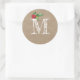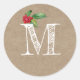 Sticker Rond Rustic Kraft Christmas Holly Monogram Initial