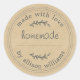 L'étiquette Rustic Kraft Fait Maison est un autocollant rond présentant un fond de papier kraft chaud avec des lettres noires douces et de doux accents botaniques. Conçue pour les produits faits maison et artisanaux, cette étiquette est parfaite pour les friandises cuites au four, les pots de confiture, les bougies, les articles en conserve et les cadeaux en petite quantité. Le message « fait avec amour » et la ligne de nom personnalisable ajoutent une touche personnelle et sincère à votre emballage.