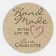 Sticker Rond Rustique fait à la main avec amour Brown coeur pap