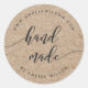 Autocollant rond rustique avec les mots "fait main" dans un script de relaxation cursive en gris foncé contre un arrière - plan motif imitation kraft. Personnalisez-le en remplaçant le texte de l'espace réservé. Pour plus d'options comme changer la police et sa taille/couleur, développer la courbe /contrat ou l'espacement entre les lettres cliquez sur le bouton "Personnaliser". *Veuillez noter que le filigrane Zazzle qui apparaît dans l'aperçu du zoom n'apparaîtra PAS sur le produit imprimé final. © Bois de rose et agrumes