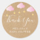 Rustic kraft scintillant baby shower rose merci, autocollant rond classique. Conçu pour se coordonner avec notre collection de baby showers à scintillants rustiques kraft. Avec de mignons nuages roses et des étoiles d'or sur des cordes, sur un arrière - plan kraft rustique, ces autocollants de baby shower sont parfaits pour sceller des enveloppes et des faveurs de baby shower. Ajoutez les détails de votre célébration en blanc pour créer l'autocollant parfait.